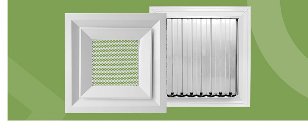 Возможна комплектация потолочной решетки клапаном расхода воздуха. Клапан расхода воздуха (КРВ) используется для для регулирования объема поступающего в помещение воздуха. КРВ представляет собой рамку с установленными в неё лопатками. Положение лопаток регулируется при помощи ручки. Изменение положения лопаток создаёт возможность изменять площадь свободного сечения решетки, тем самым регулируя объем подаваемого воздуха.