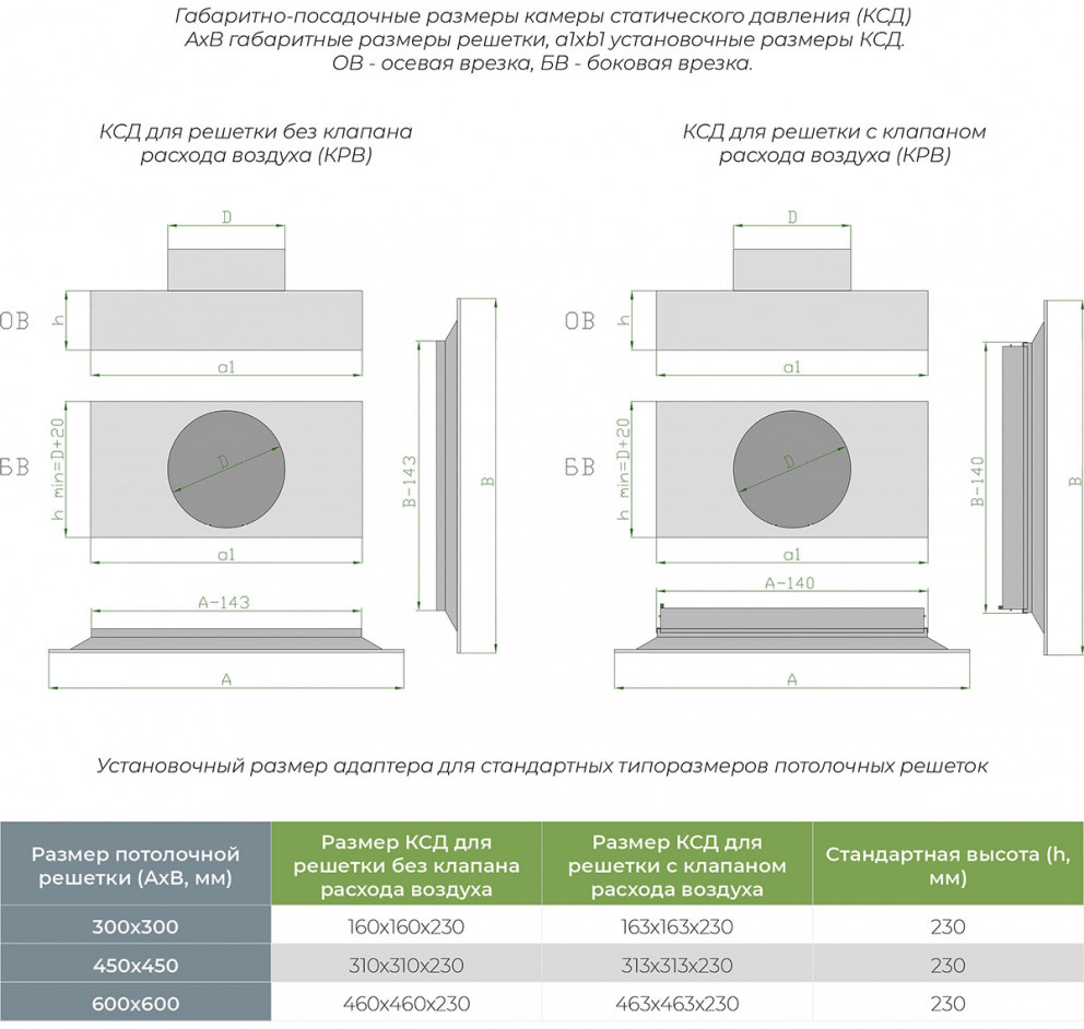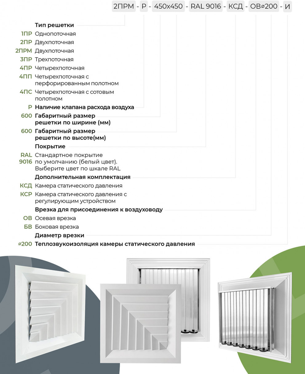 Для подключения к системе воздуховодов потолочные решетки комплектуются камерой статического давления – КСД или КСР.