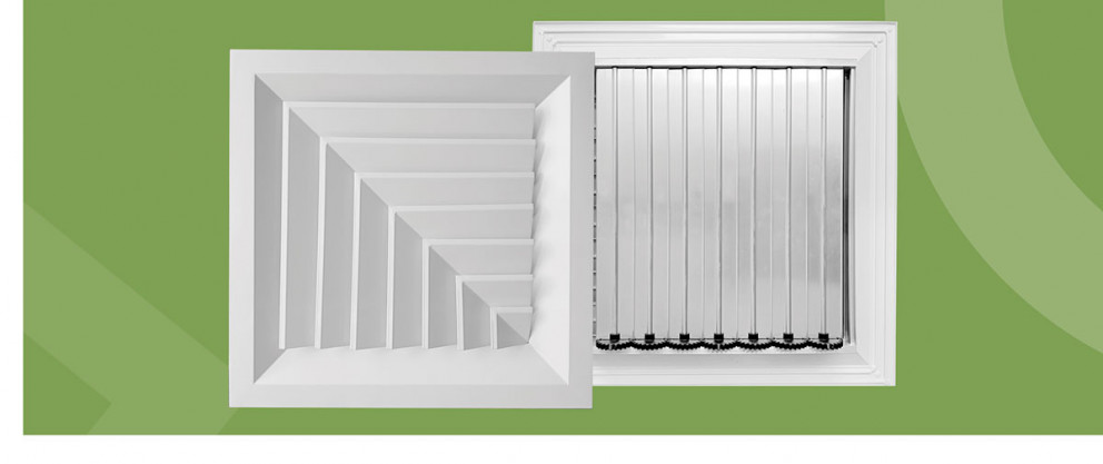 Возможна комплектация потолочной решетки клапаном расхода воздуха. Клапан расхода воздуха (КРВ) используется для для регулирования объема поступающего в помещение воздуха. КРВ представляет собой рамку с установленными в неё лопатками. Положение лопаток регулируется при помощи ручки. Изменение положения лопаток создаёт возможность изменять площадь свободного сечения решетки, тем самым регулируя объем подаваемого воздуха.